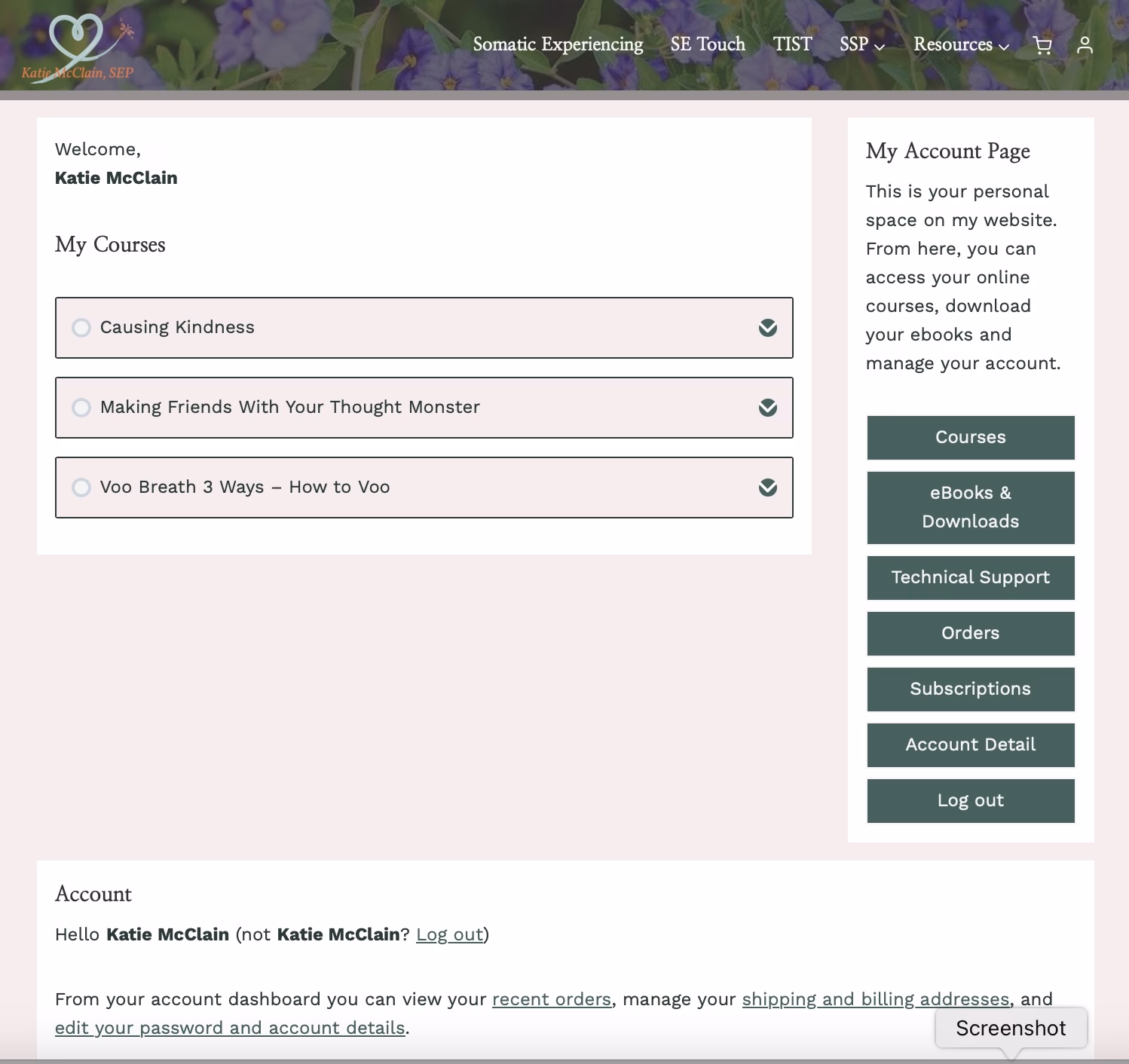 - Your My Account page appears once you have registered or made a purchase. You will also receive a receipt in your email account. The My Account page can be found at www.katiemcclain.com/my-account