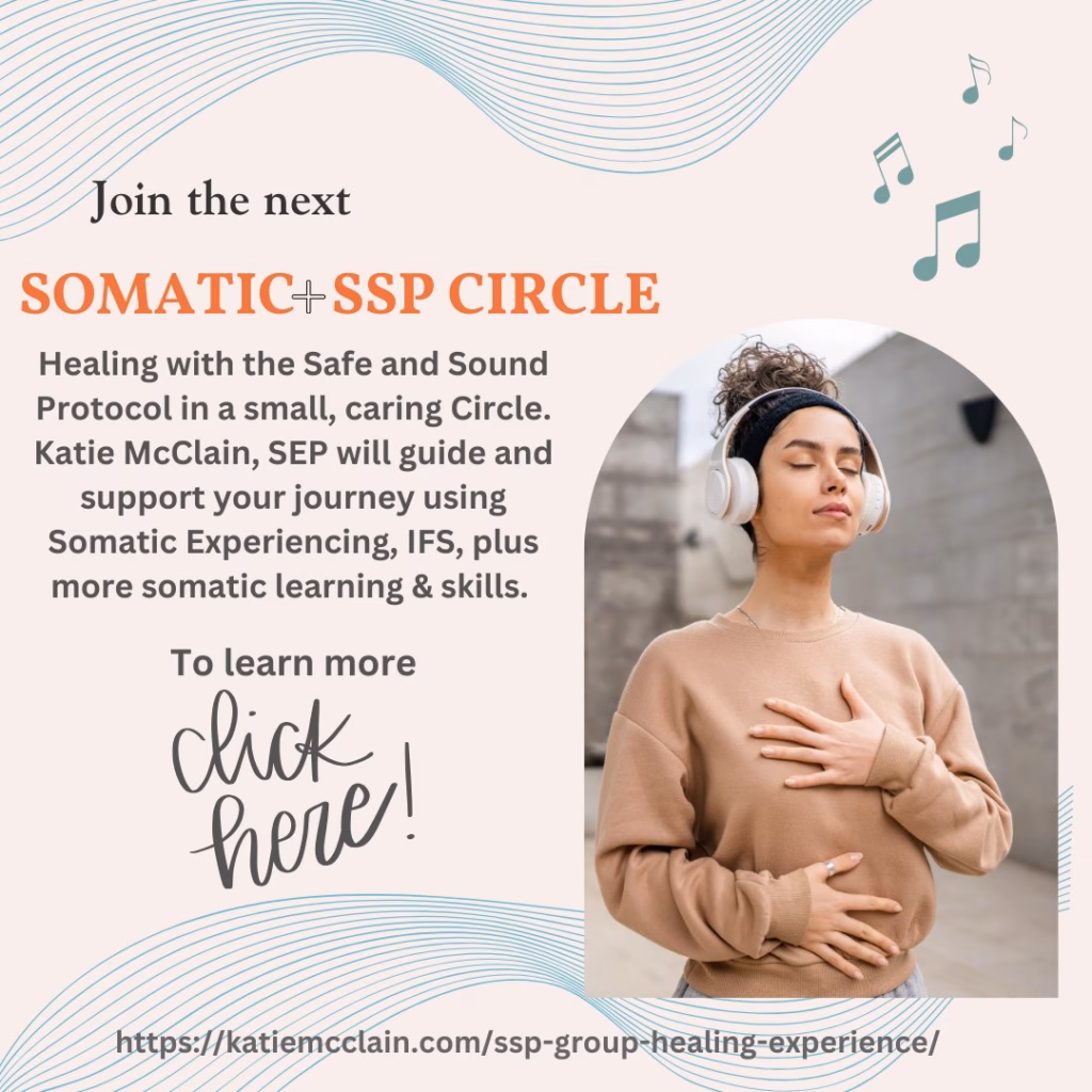 My guidance and support during the SSP is done via Zoom video chat (or in person). Fees are based on my hourly rate plus an onboarding fee to access the MyUnyte App and the music. Typically, each session is one hour whether listening to all or a portion of the SSP music (depending on the age of the client, we may adjust length of session). We use the remaining time to process with Somatic Experiencing, Parts Work (TIST) and sometimes Co-Regulating Touch. I offer SSP to families, current clients, and work with other therapists to offer the SSP to their clients. I also offer mentoring, coaching, and experiential SSP sessions to new SSP Practitioners.